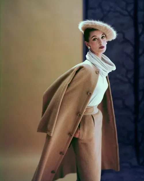 A coat, skirt and blouse designed by Claire McCardell, as seen in Vogue in 1952.