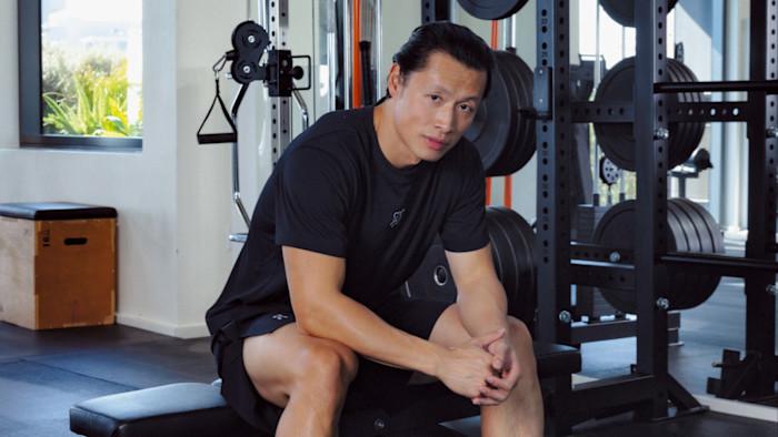 Chan is not your normal celebrity trainer. His vibe is almost monastic; the gym is zen. He exudes a confident serenity that engenders trust immediately – particularly useful when he hands over an 8kg weighted log, also known as a ViPR, and tells me to arabesque. There’s no sparkly Peloton enthusiasm; no intense Barry’s playlists; no military-style yelling beside the treadmill. “This isn’t some LA celebrity woo-woo bullshit,” he says. In the gym, the only branding is the word “Roydian” embroidered into face cloths and stamped across protein-shake cups. It’s also stickered in a tiny insignia on the window, which overlooks the Los Angeles sprawl.