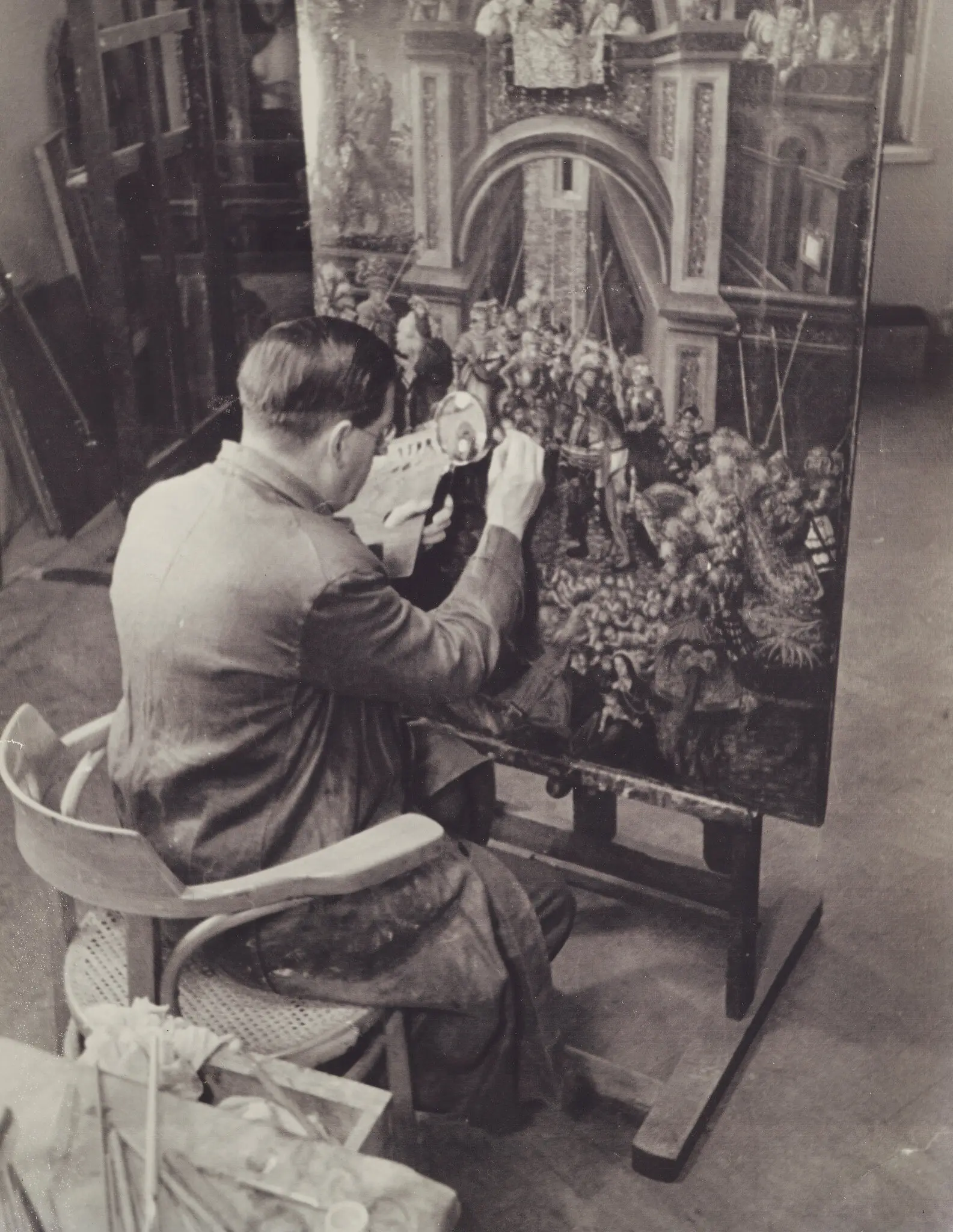 An art restorer working on a painting in 1942, in a photograph taken for a German newspaper. Art restoration in Nazi Germany is the topic of a new book by a British researcher, who explored how some experts aided the Nazis.