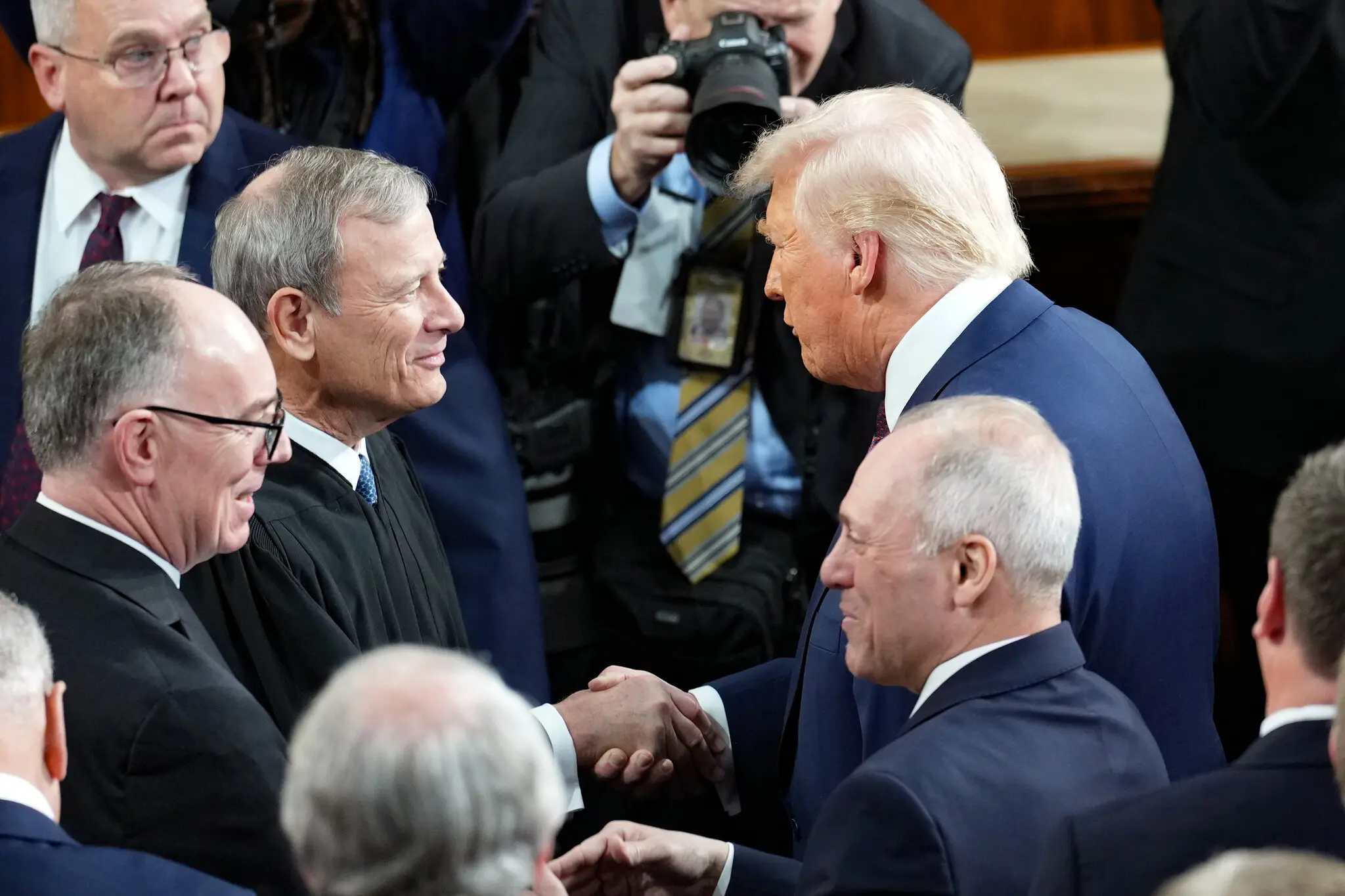 President Trump greeting Chief Justice John G. Roberts Jr. at last year’s address to Congress.
