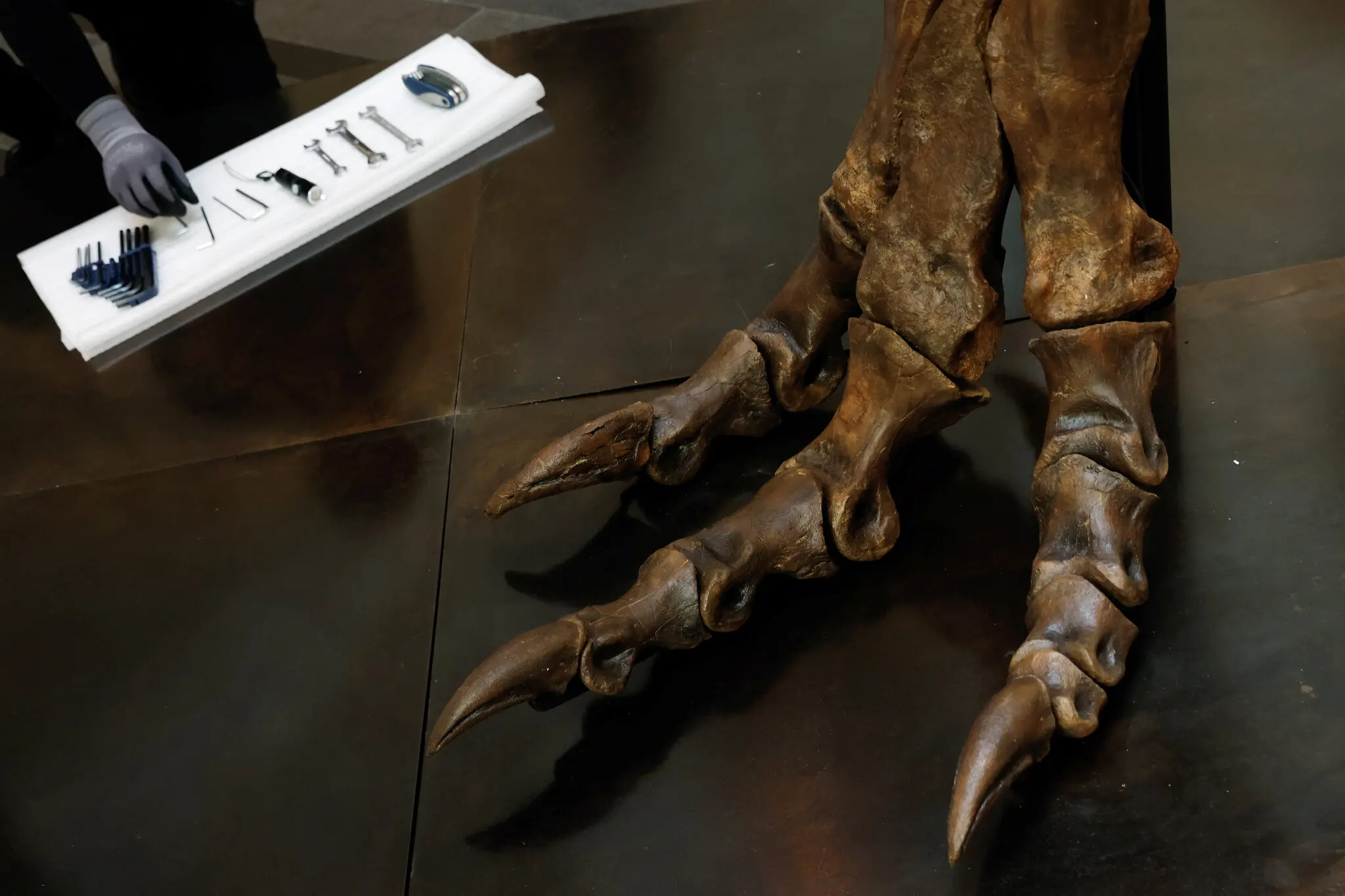 Assembling a Tyrannosaurus rex skeleton for a Christie’s auction in Singapore in 2022.