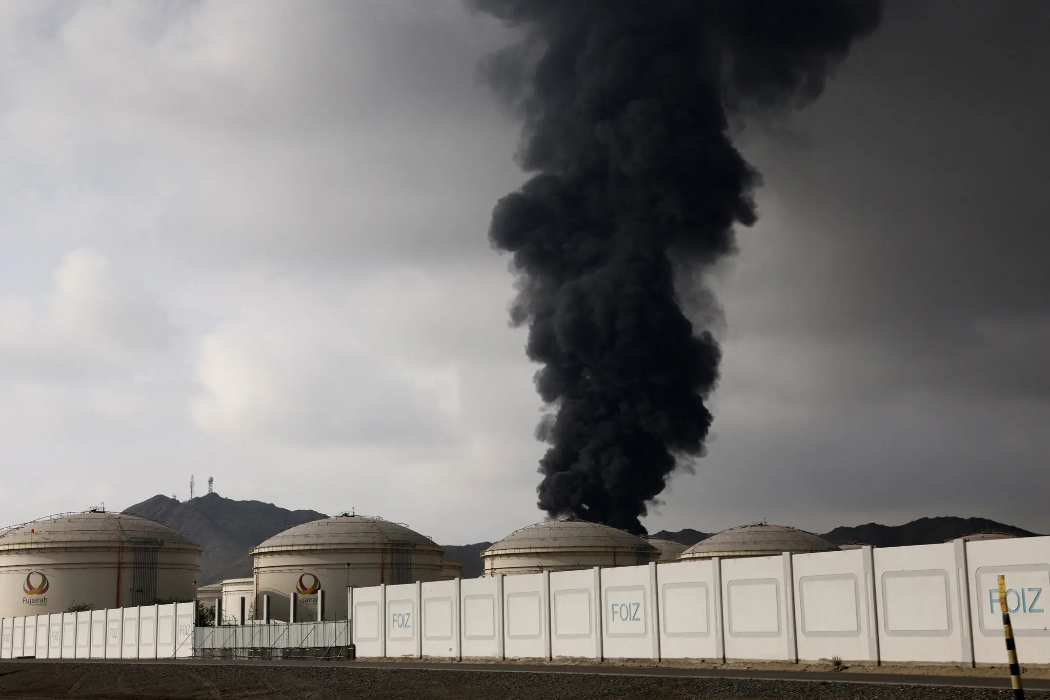 Debris from an intercepted drone started a fire on Wednesday at the Fujairah oil industry zone in the United Arab Emirates.