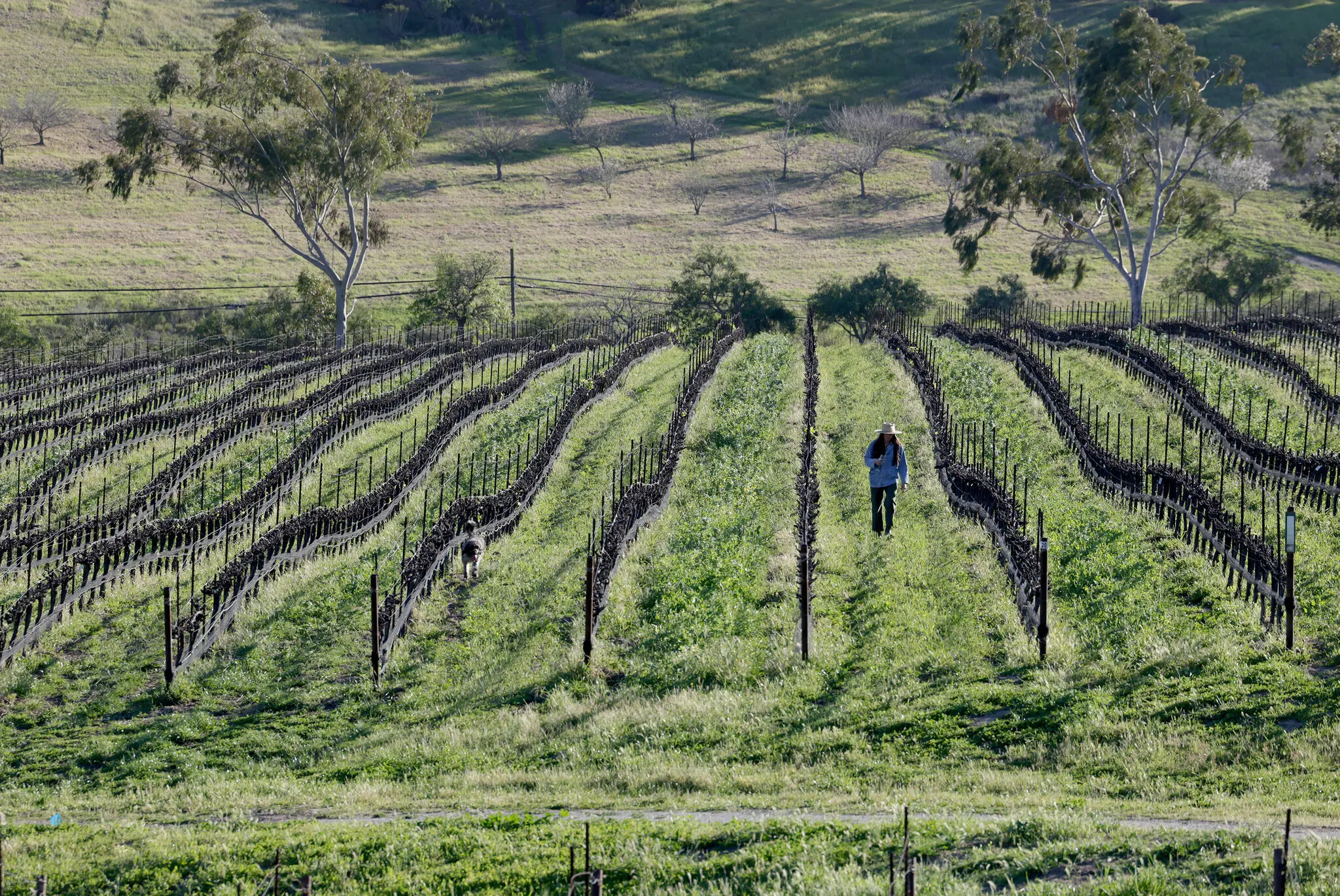 Gina Giugni in the Bassi Vineyard in the San Luis Obispo Coast region of California. She and her husband, Mikey Giugni, acquired the vineyard in 2024.