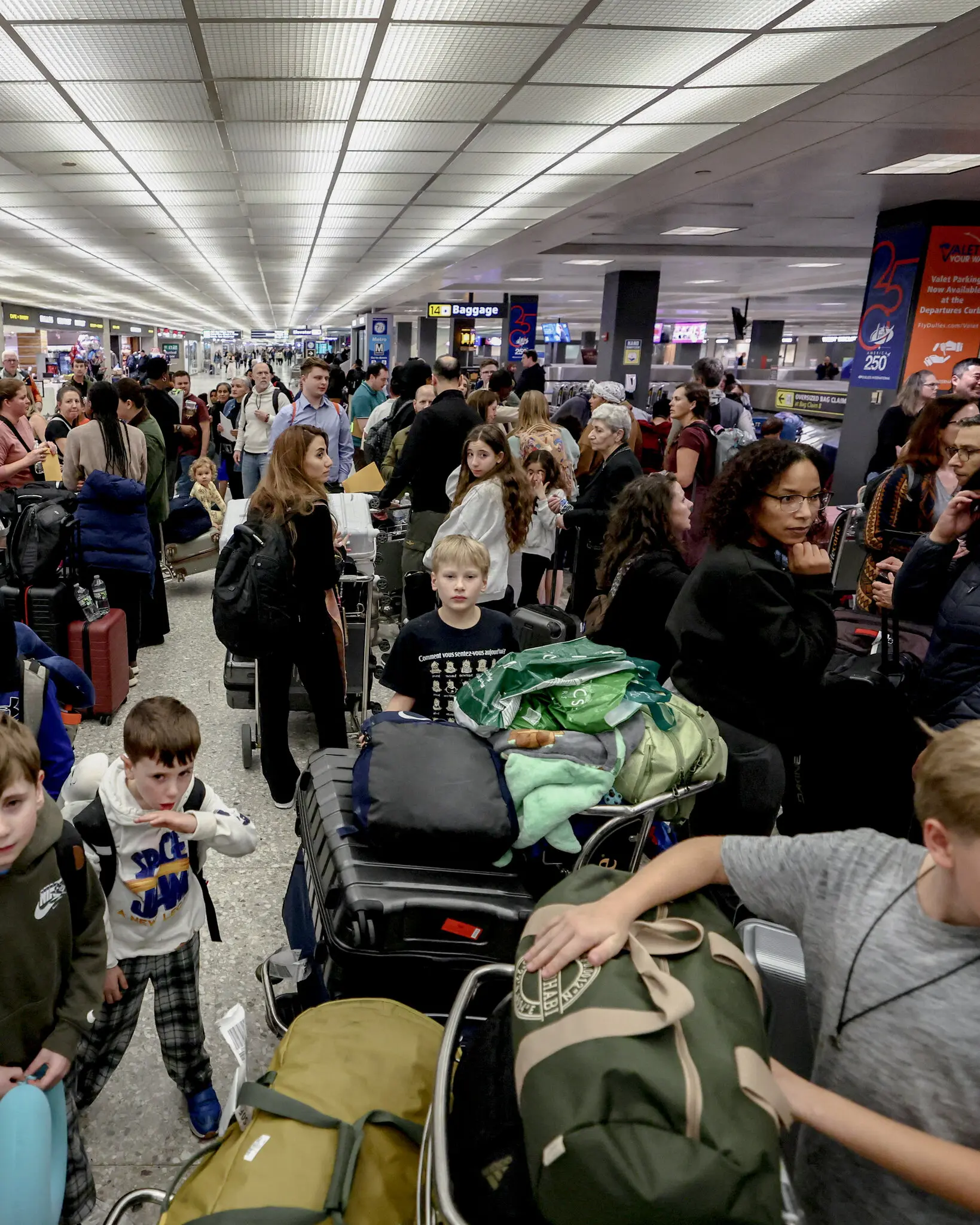 Passengers evacuated from the Middle East gather at Dulles International Airport last week.
