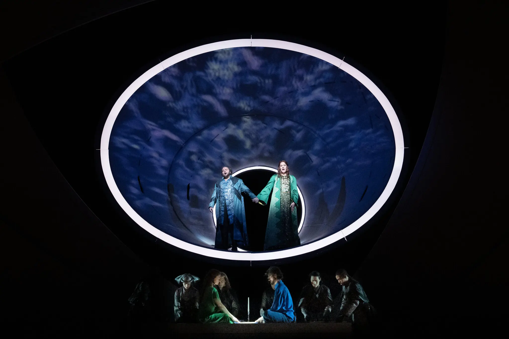 Michael Spyres, left, and Lise Davidsen in the tunnel as the title lovers in “Tristan und Isolde” at the Metropolitan Opera.