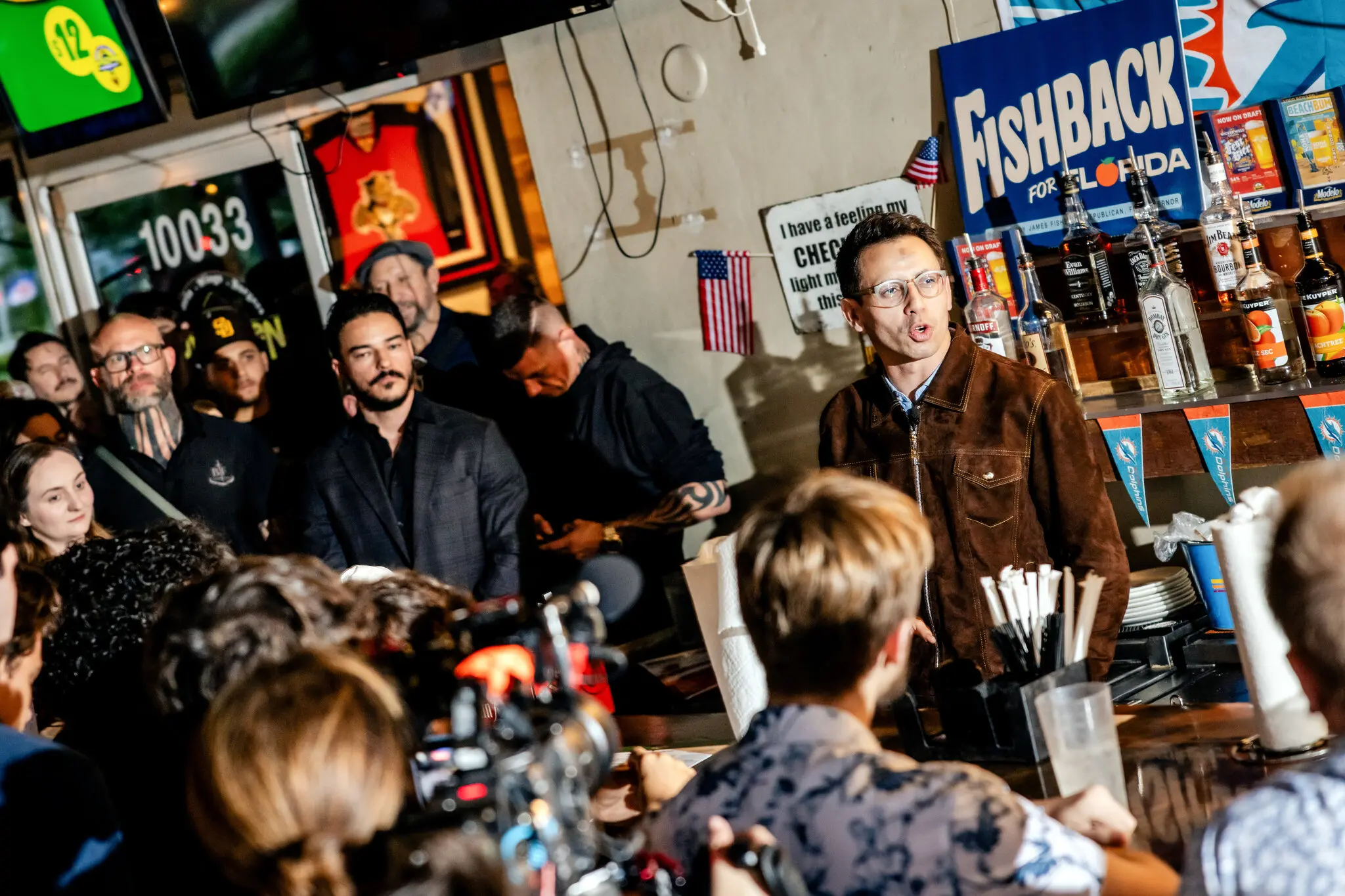 James Fishback during an event at Luv’n Oven Ale House in Sunrise, Fla., in February. Even in person, Mr. Fishback, 31, is channeling a mode of politics that finds its energy through posting online.